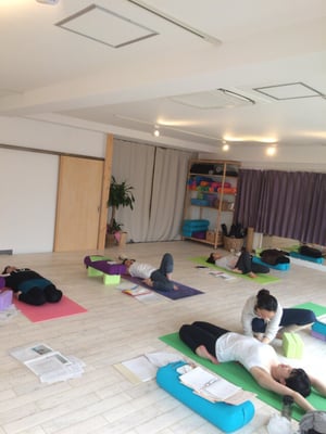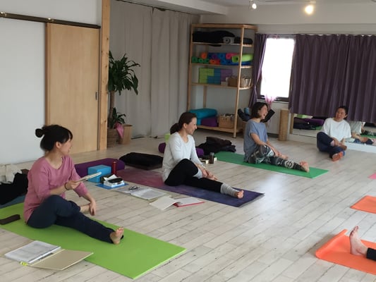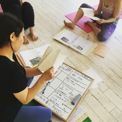10日目。講座で学ぶアーサナは残りわずかとなりました。アーサナについて学ぶだけではなく、アーサナから影響をうける臓器の働きなども学んでいきます。生徒さん同士で自分の体の癖や、よく出る症状などもシェアし、その一つ一つを丁寧に資料や体を使って裕子先生は説明してくれます。皆さんの日々体や心で感じることや疑問を、アーサナの効果と関連づけて学ぶことができるので、自分自身のことだけでなく、ヨガを伝えるインストラクターになったときにも、とても役にたつ知識となりますね。土曜コース・月曜コース、どちらの生徒さんも探究心がとてもあり、熱心に学ぶ姿は知性が増し、輝きに満ちています。