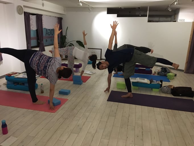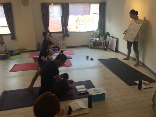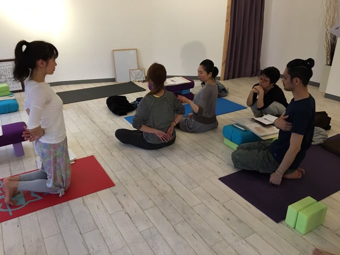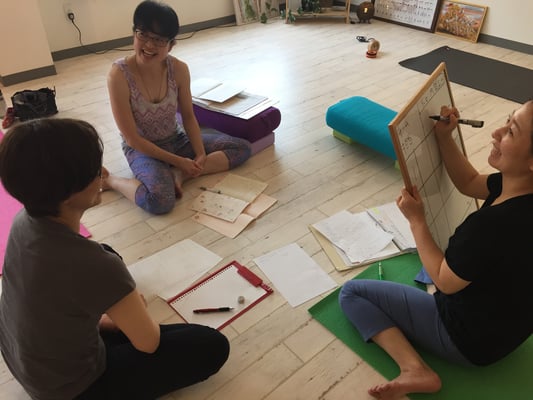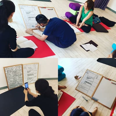 講座も修了試験にむけて30分のデモクラスを何度もやります。もちろん自分で趣旨やアーサナを決めていきます。