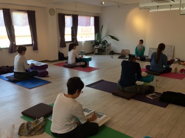 アドバンスコースはRYT200取得を目指す方とヨガの学びのみを深めるラーニングコースの方が参加されています。前半はヨガの学び全般・後半はインストラクターを目指すためにさらに深く学んでいきます。