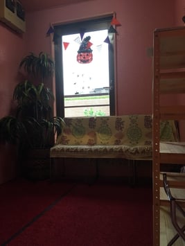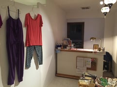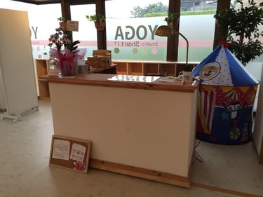 スタジオの入っているビルは、Shanti3と同じテーマカラーのシャンティピンク♡3階まで上がっていただいたら、クラスが終わるまで、このエントランスで次の生徒さんはお待ちください。